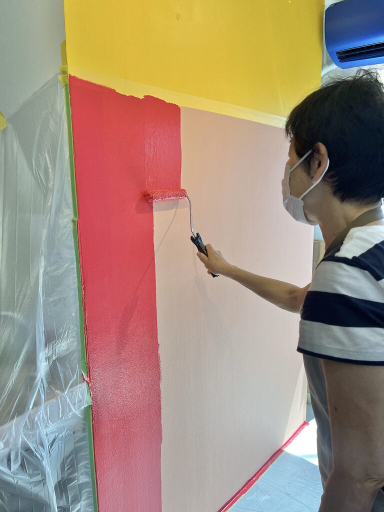 お2人とも、ペンキを触るのは初めてとのこと👌´-