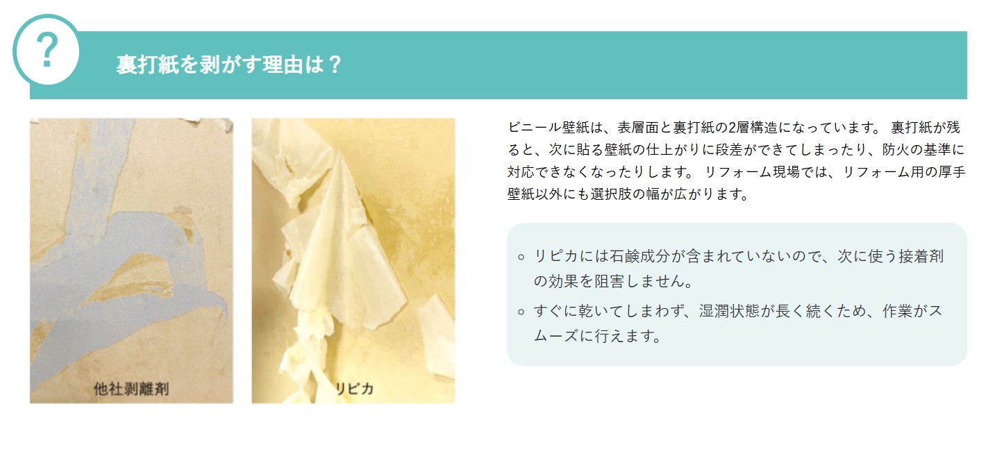 壁紙施工現場のお悩みを解決する 壁紙裏打剥がし・糊拭き取り剤