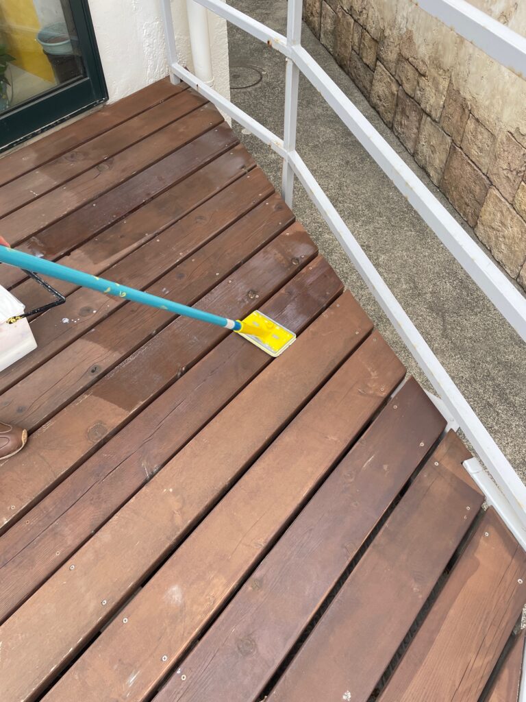 藻が生えたウッドデッキを水で洗浄するだけで!